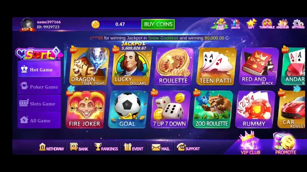 - Wide Game Collection – Play Teen Patti, Plinko, Dragon Tiger, Gold Mines, Andar Bahar & more.
